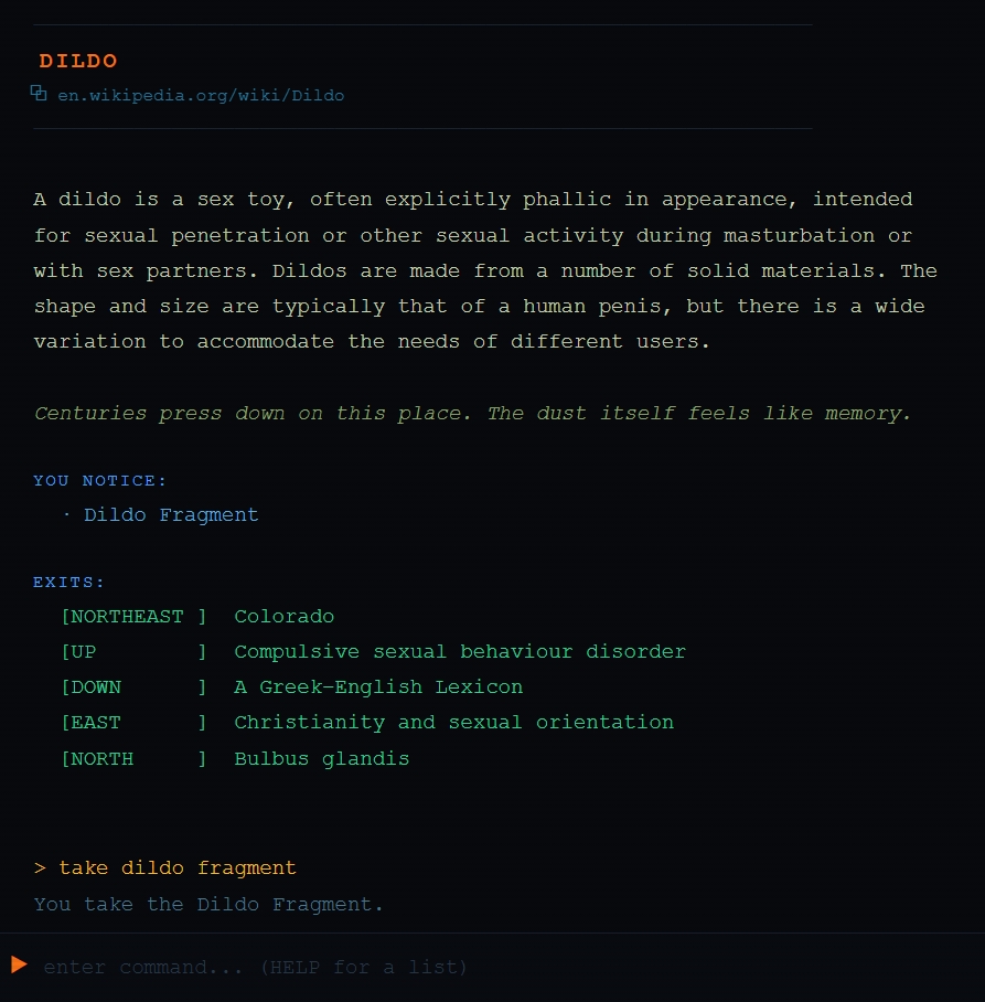 Disambiguation handling: if you land on an ambiguous topic, it shows suggestions instead of dumping you into a useless room.